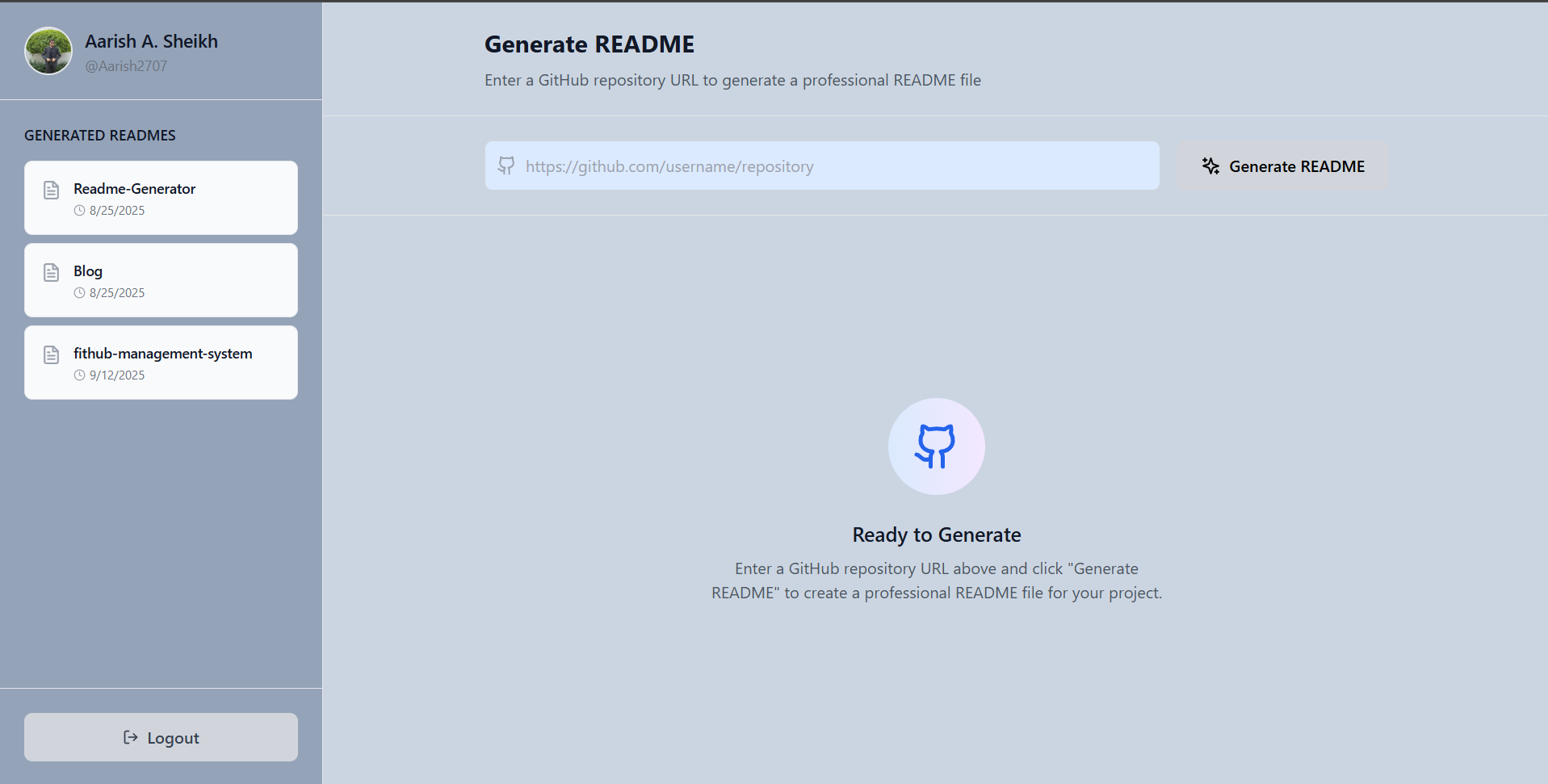 This is an Ai powered Readme generator integrated with google gemini(flash 1.9).