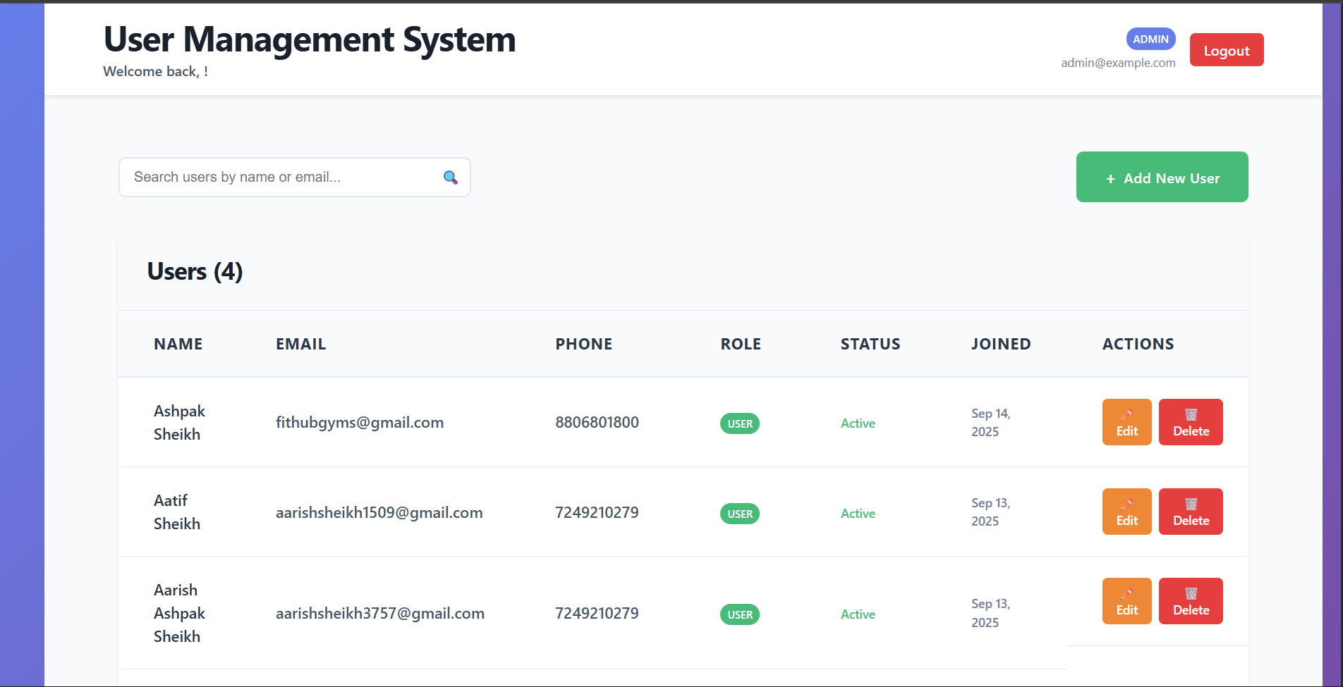 A Basic User Managament System, implemented using MERN stack (React.Js and Node.Js)